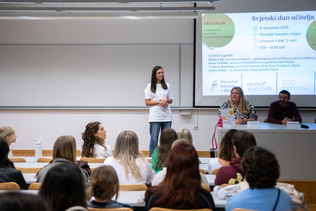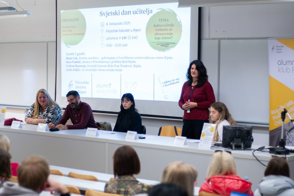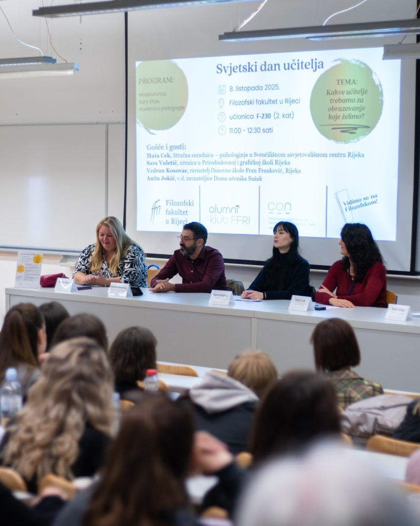 Na poziv dragih kolegica s odsjeka za pedagogiju Filozofskog fakulteta u Rijeci, sudjelovale smo 8. listopada na obilježavanju Svjetskog dana učitelja na Filozofskom fakultetu u Rijeci. Pod temom „Kakve učitelje trebamo za obrazovanje koje želimo?“, u organizaciji Centra za obrazovanje nastavnika i Alumni kluba Filozofskoga fakulteta, ove se godine događaj fokusirao na potrebe novih generacija učenika, izazove digitalnog doba te mentalno zdravlje.